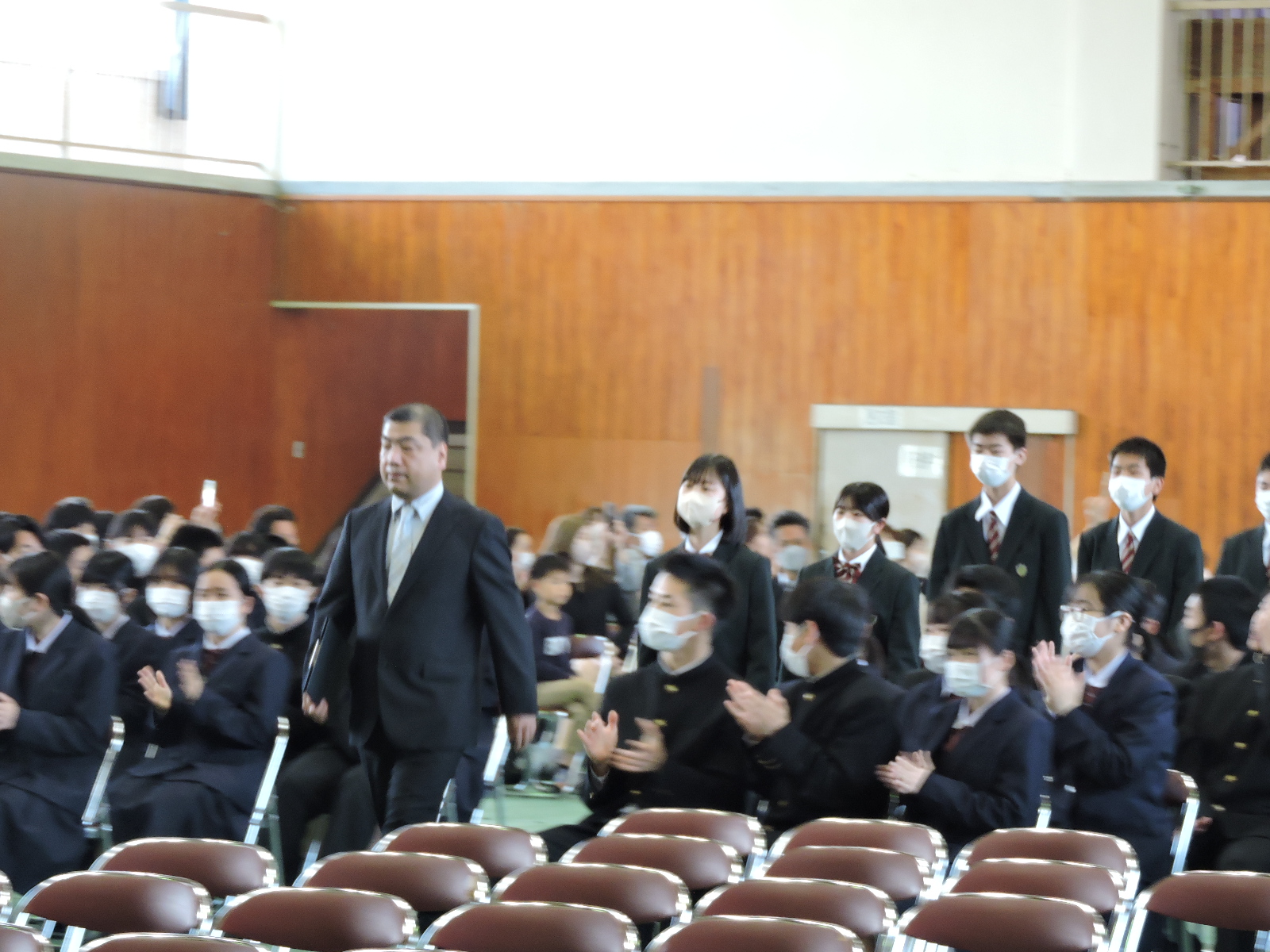 新しいデザインの制服に身を包んだ初々しい75名の生徒を体育館にて皆で迎え入れることが出来ました。