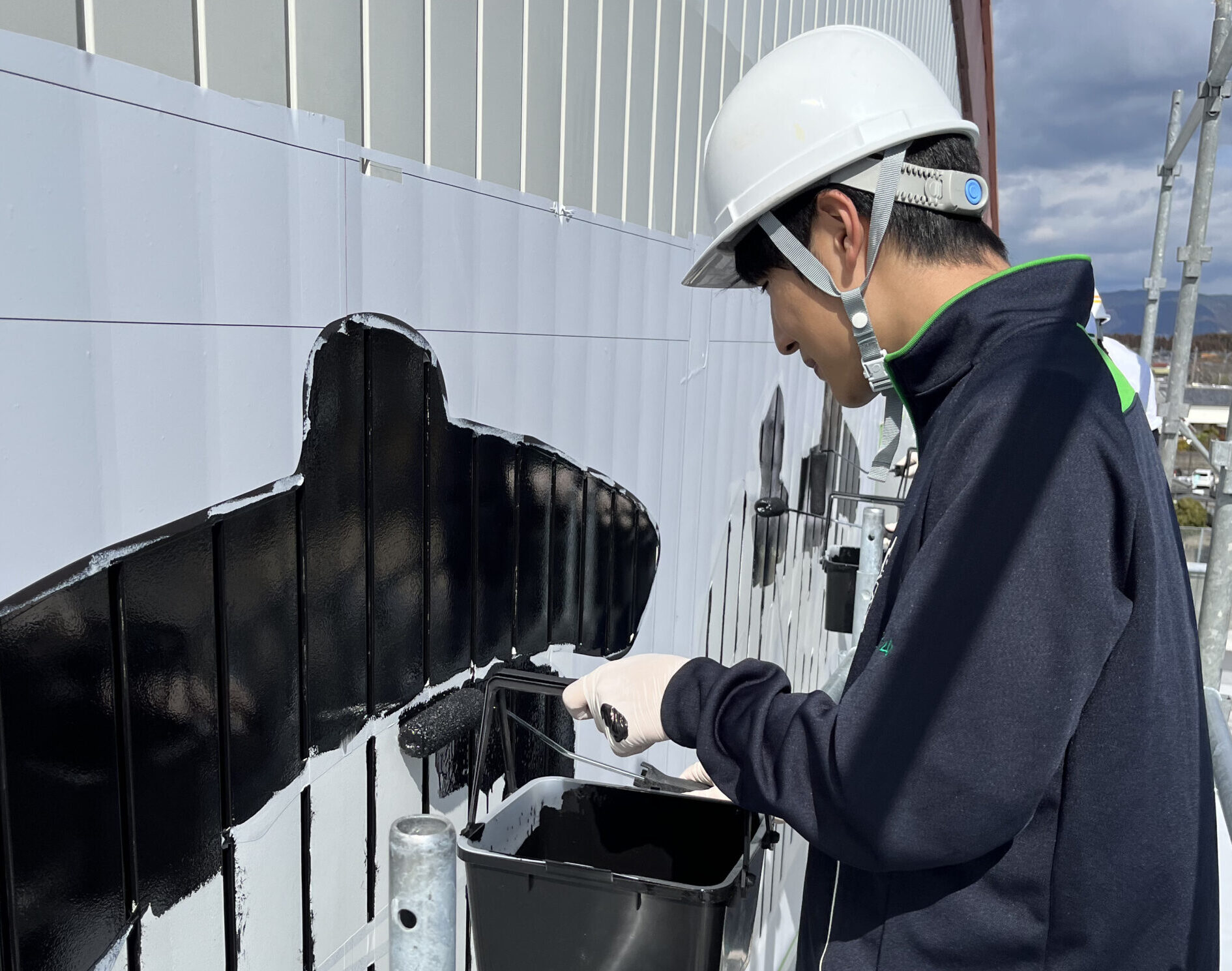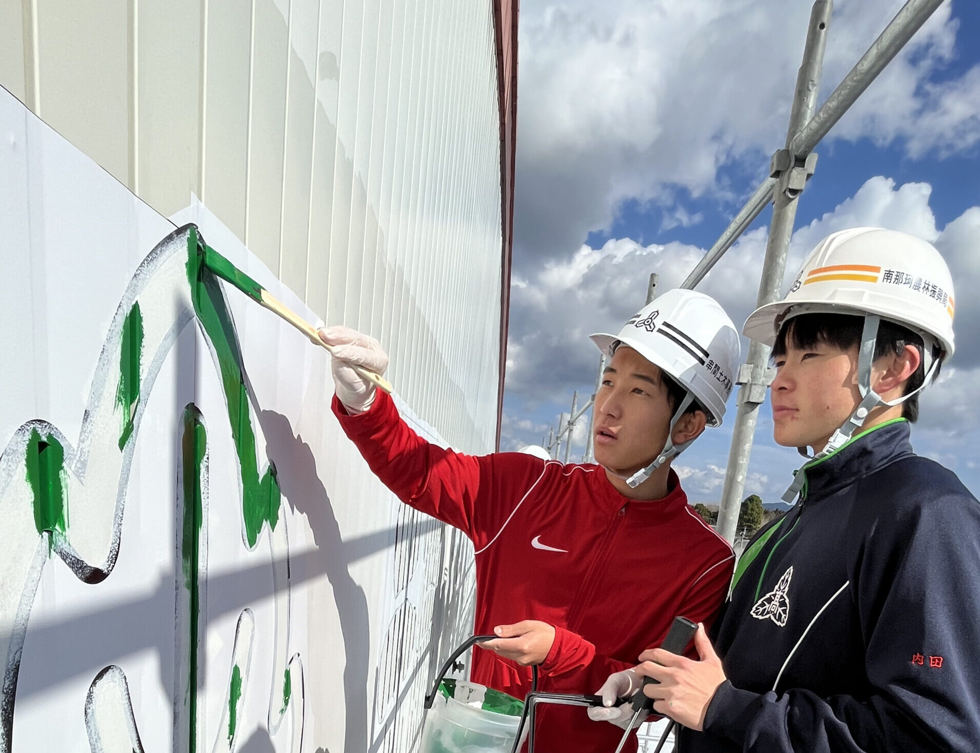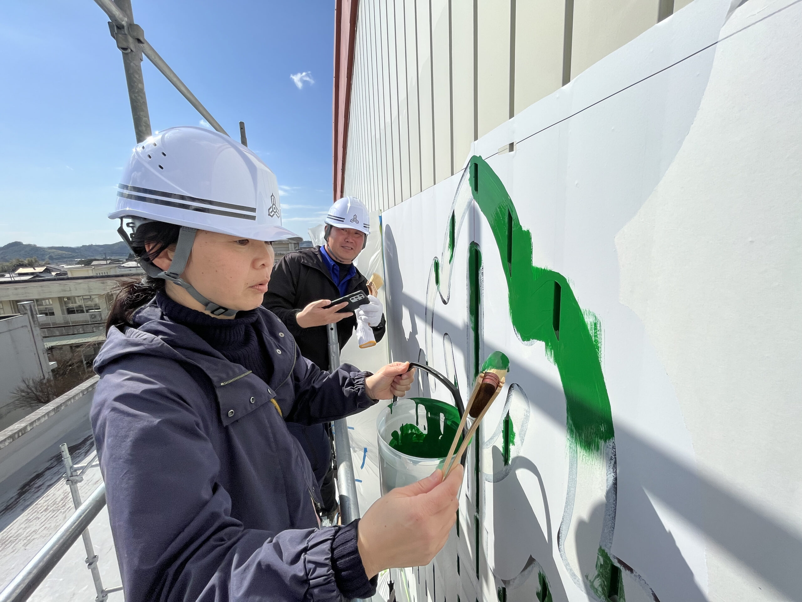 雨も心配される中ではありましたが、生徒を代表して、3年生、生徒会役員、職員、PTAが共同して塗り上げ、完成しました。